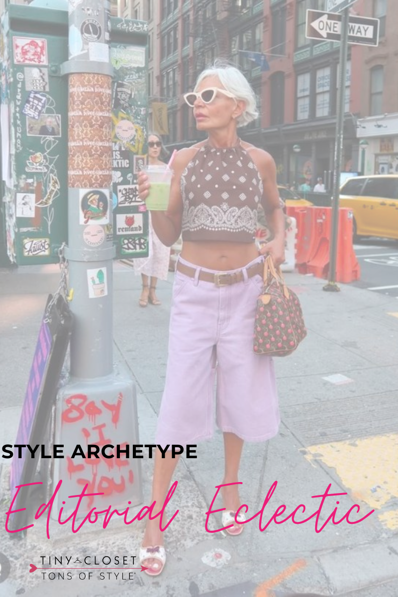 The Editorial Eclectic archetype is fashion-forward, expressive, and unapologetically experimental. She doesn’t just follow trends—she absorbs, reimagines, and layers them. Her style is informed by the runway, pop culture, and a deep love of visual storytelling. It’s maximalism with intention.