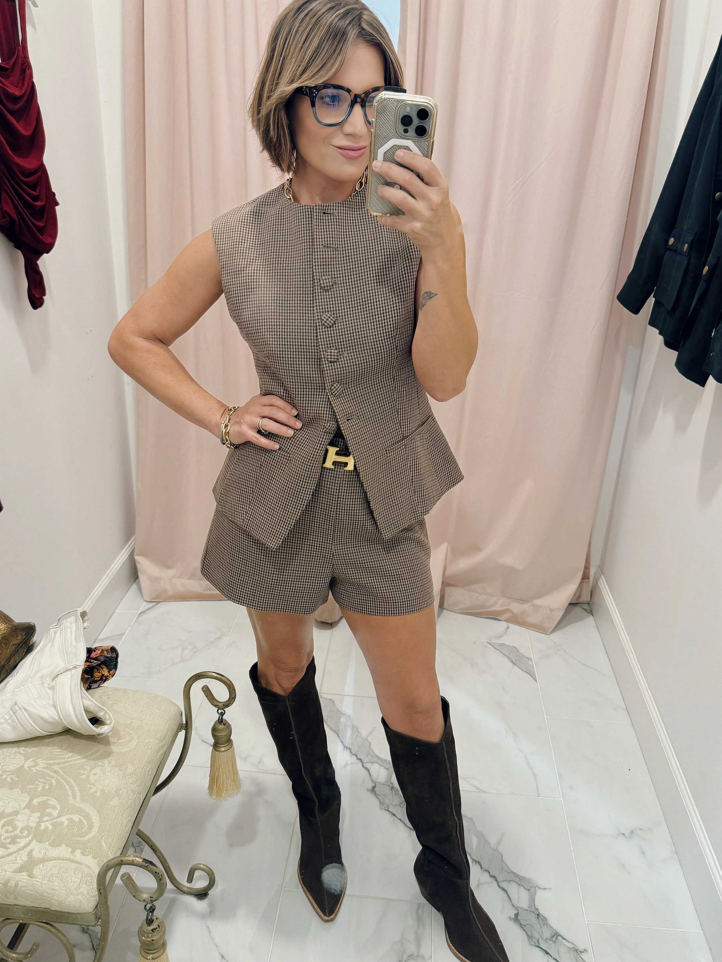 My checked set is ASTR the Label Gisselle Crewneck Vest and Shorts (sold separately).