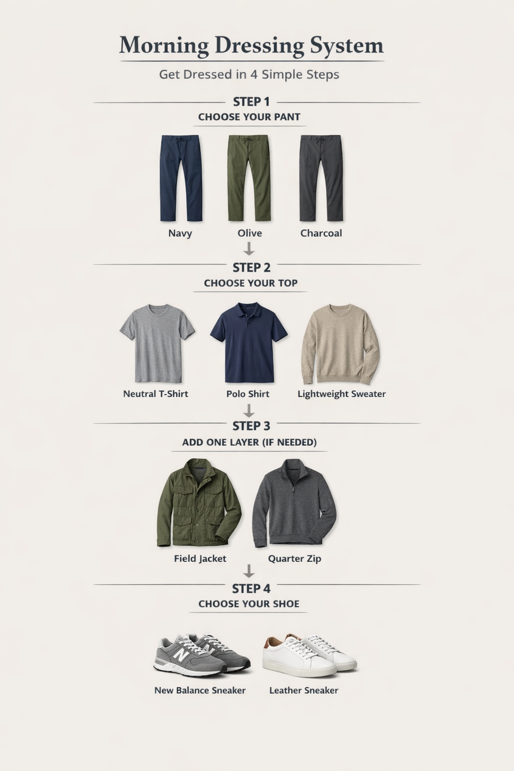 You do not prefer jeans. That is fine. Your wardrobe will center around technical trousers that feel comfortable but read polished.