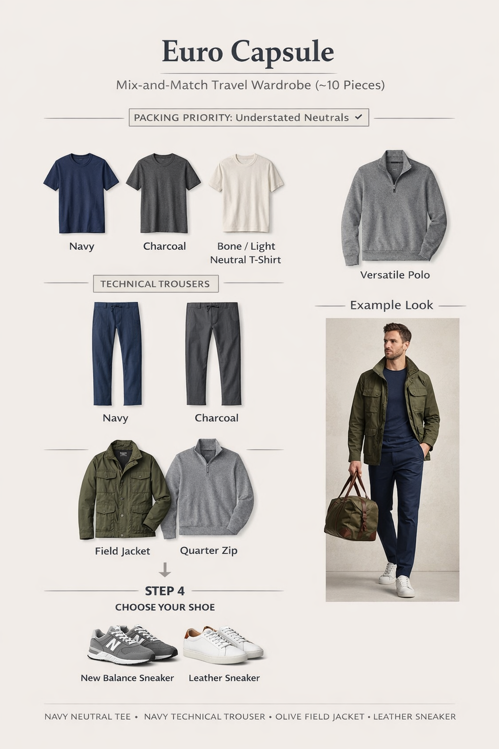 Goal: Add one structured outer layer that elevates casual outfits and blends naturally in Europe.